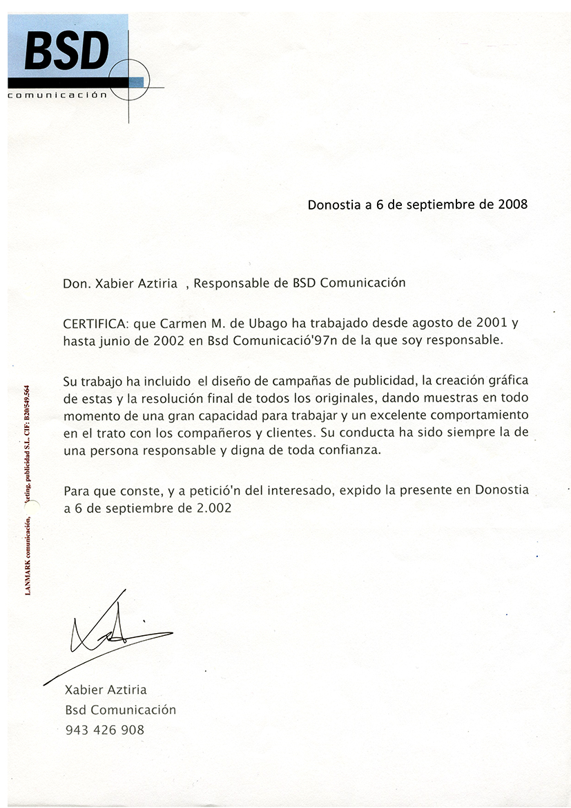 Fui gerente (y dueña) y trabajé como agente de viajes durante dos años en la que era mi propia agencia de viajes «Viajes Mpiro» de PlanTour en la calle General Echagüe, 1, de San Sebastián (desde abril 2007 hasta septiembre de 2009). Zuzendari eta bidaia agente izan nintzen bi urtez ¨Viajes Mpiro¨bidaia agentzia propioan, Donostiako General Echagüe kalean. Diseinatzaile eta bidaia agente gisa lan egin zuen.