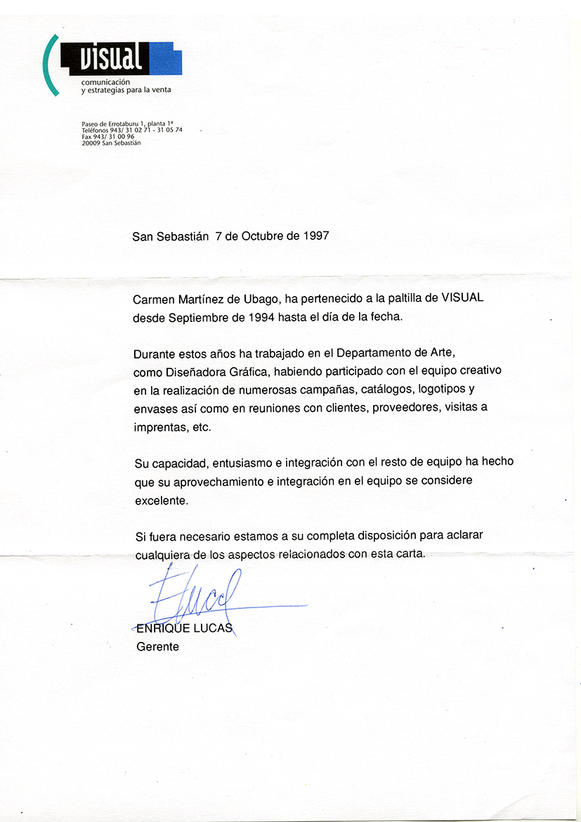 -Durante un verano trabajé como encargada y dependienta de la tienda de ropa “Harry’s” en la calle Gran Via, 12 de San Sebastián (1990).