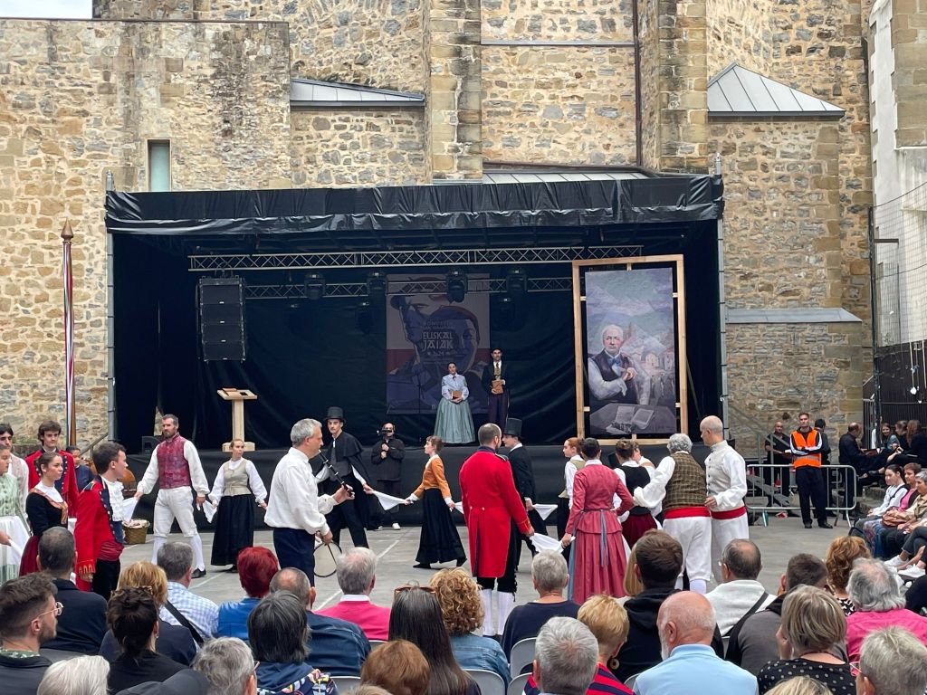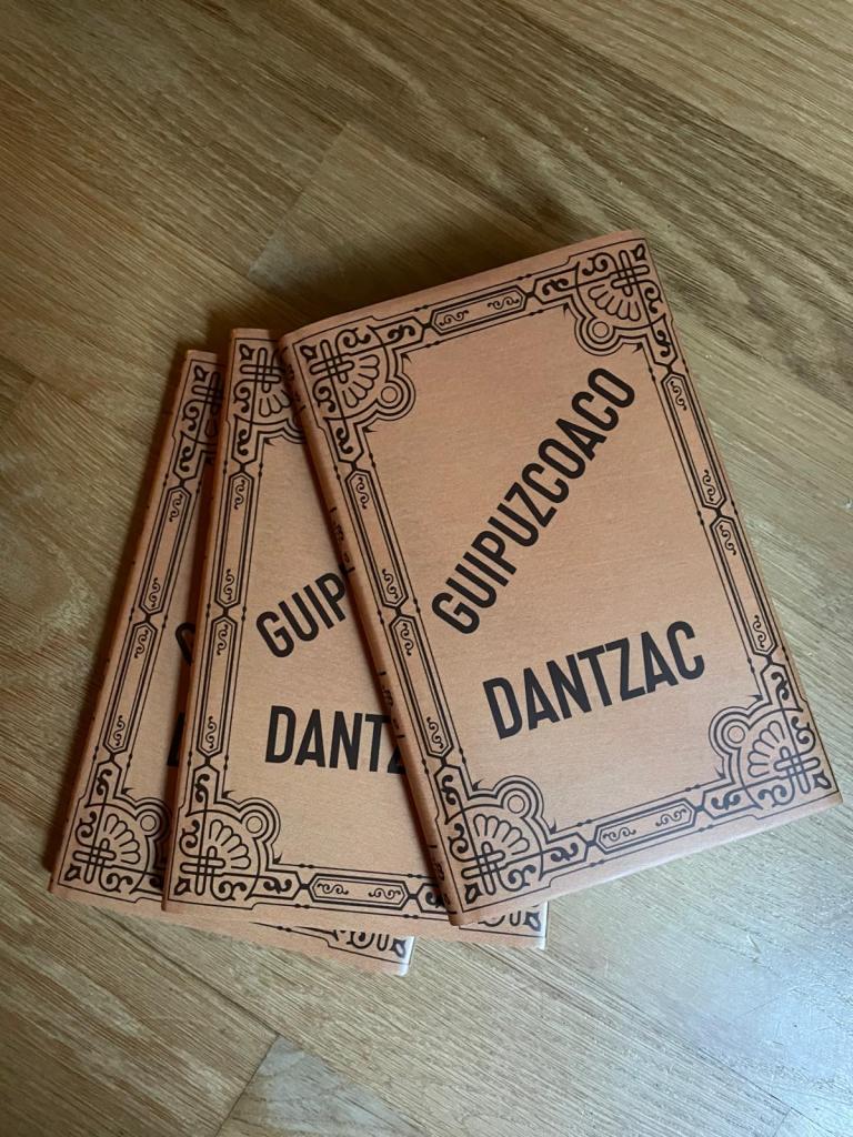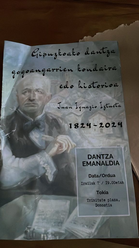 REDIBUJO DIGITALMENTE PORTADAS DE LIBROS ANTIGUOS. Me han pedido dibujar con lápiz digital copiando lo más fielmente la portada de este libro antiguo ya que la fotografía de internet era de muy mala calidad, para imprimirlo para esta obra de teatro: Gipuzkoako dantza gogoangarrien kondaira edo historioa. Homenaje a Juan Ignacio Iztueta (bailarín que recopiló todos los pasos de danza que se hacían en Gipuzkoa en este libro, llamado «el libro de la danza»). 1824 – 2024. Los dos actores y el coro lo llevaban en las manos: