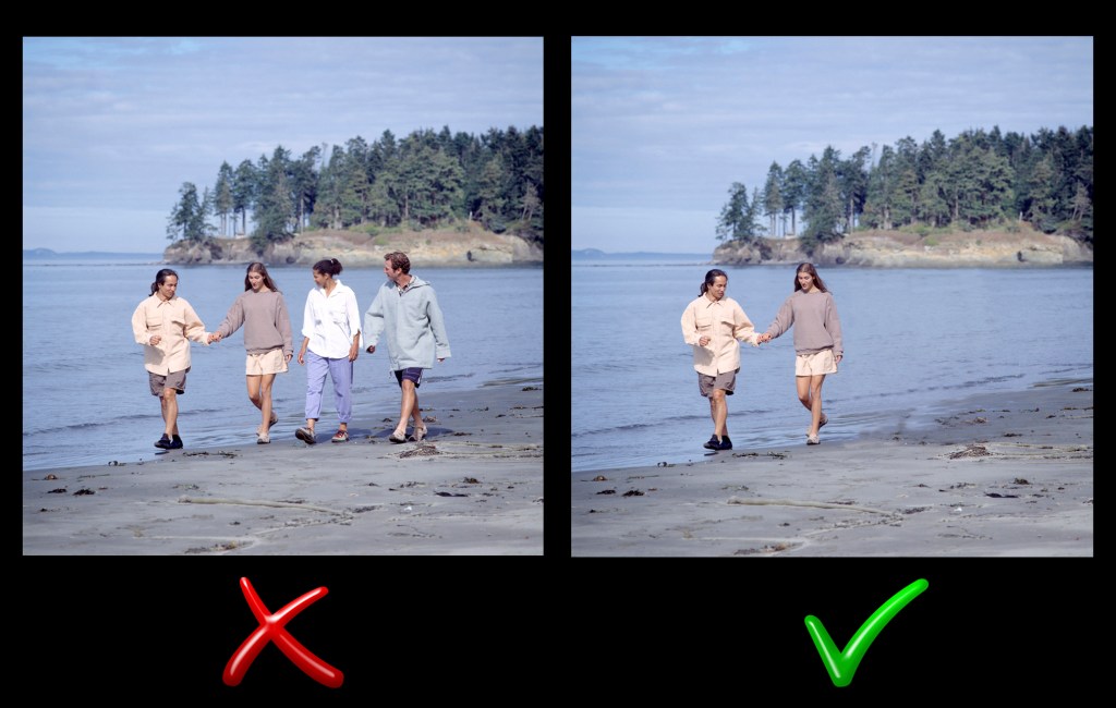 Eliminación de elementos o personas que estropean tu fotografía. Por ejemplo un coche en el fondo de una bonita fotografía o personas que pasan casualmente por detrás o que no queráis que aparezcan.